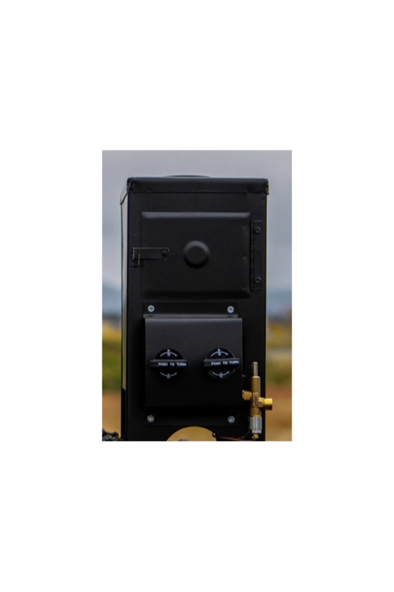 Ovnen selges i «pakke» med 1 stk propan ovn Modell 4000, 4 piperør, 1 spjeld, 1 pipehatt, stormhatt til pipe. & regulator kit.