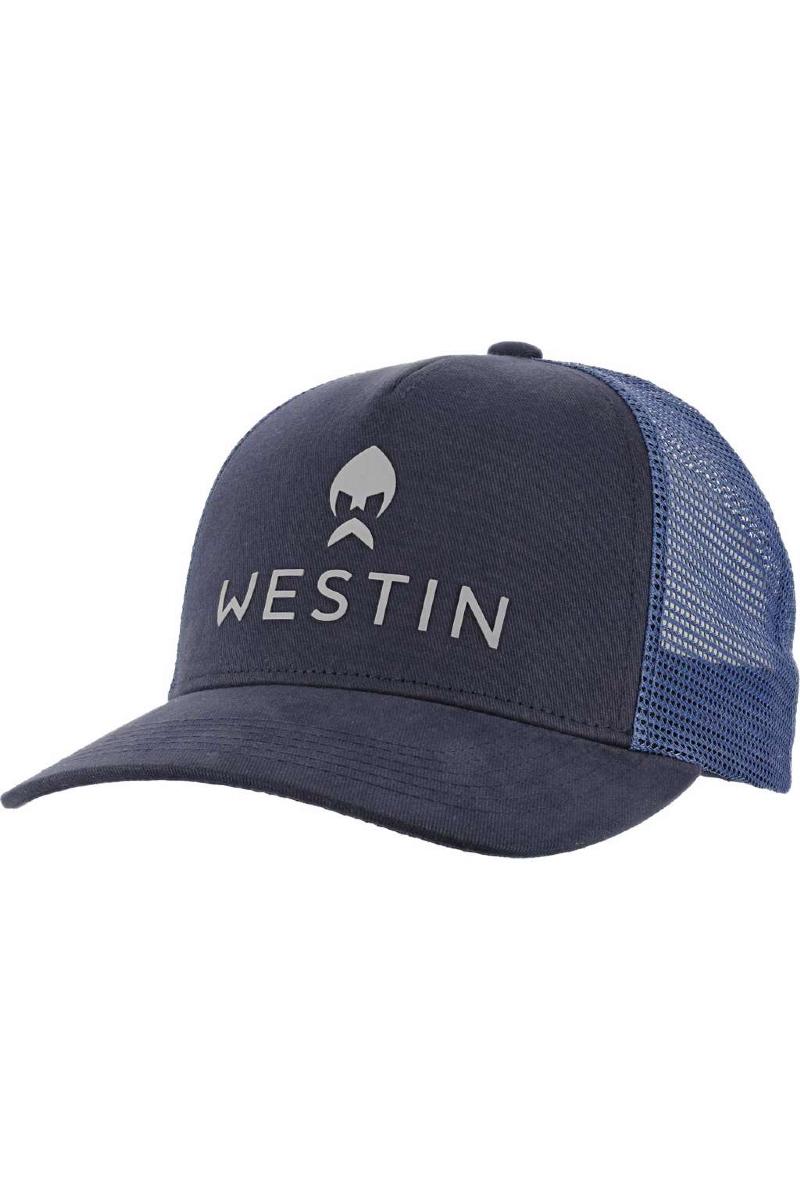 College Blue 16's Twill med hvit meshWestin-logo foran og Westin Pirate-merke bakSkall: 65 % bomull 35 % polyester Mesh: 100 % polyesterBakpaneler i nylonnettSnapback-lukking